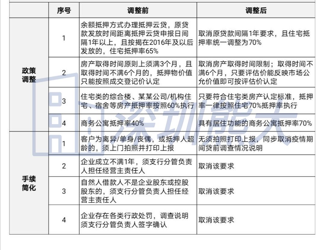 1、取消余额抵押原贷款间隔要求,余额抵押住宅抵押率统一为70%。