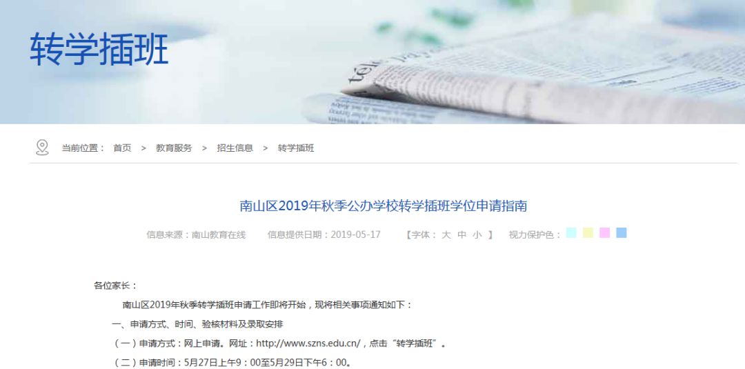 南山区教育局发布2019年秋季公办学校转学插班学位申请指南!