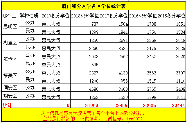 以下数据出自:各区教育局官网、厦门招考、惠民大叔网站、畅享团队、百度搜索、微信搜索等。